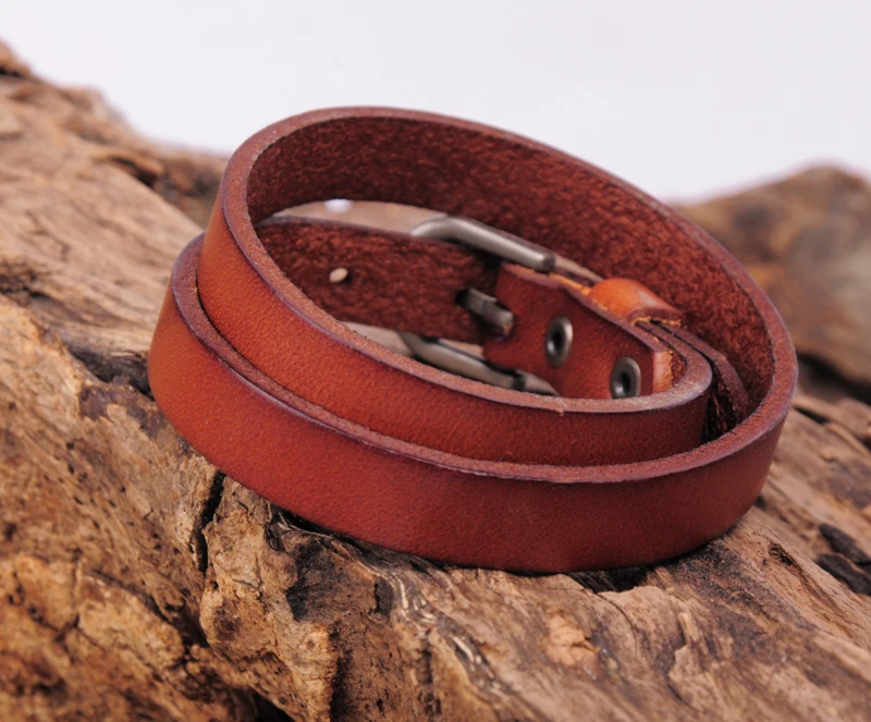 G522 Light Brown Punk Biker Cool Metal Buckle Double Wrap Leather Bracelet Cuff Men's