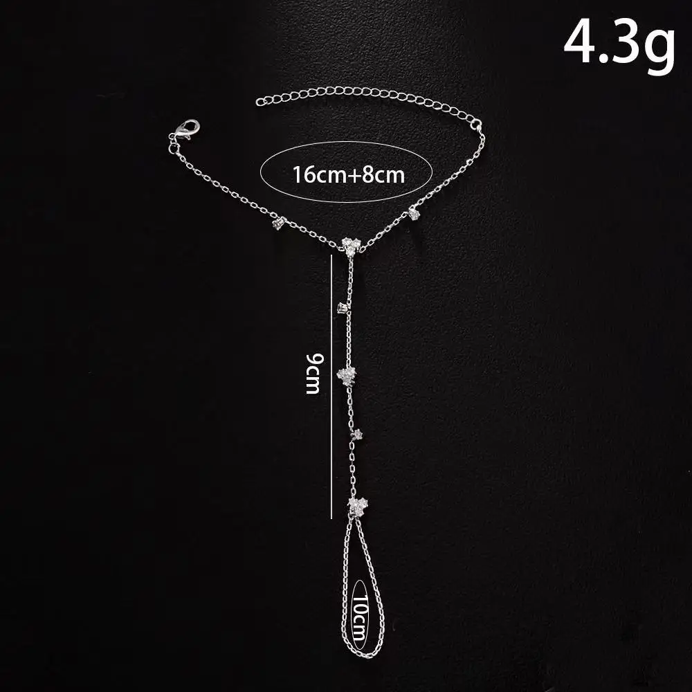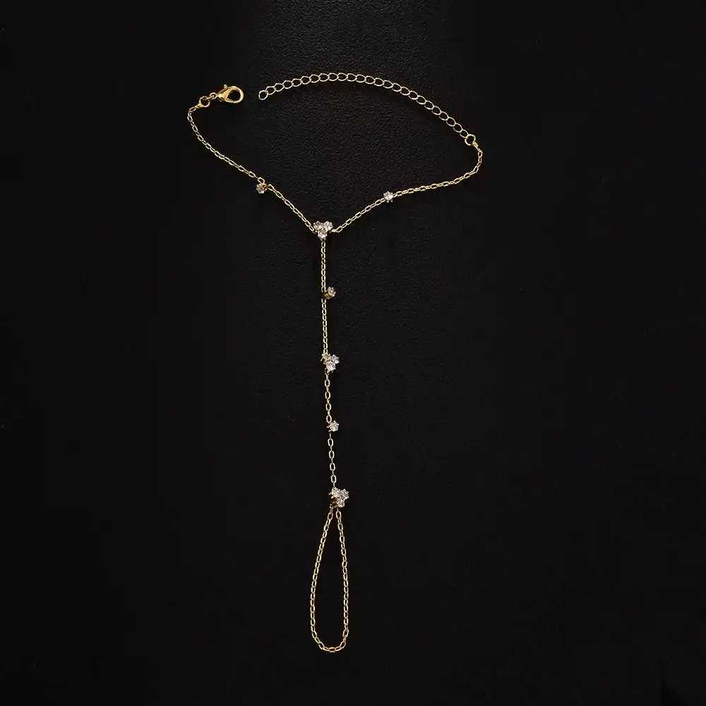 Summer New Rhinestone Flower Hand Back Bracelet Wedding Jewelry for Women Crystal Geometric Finger Bracelet Party Jewelry